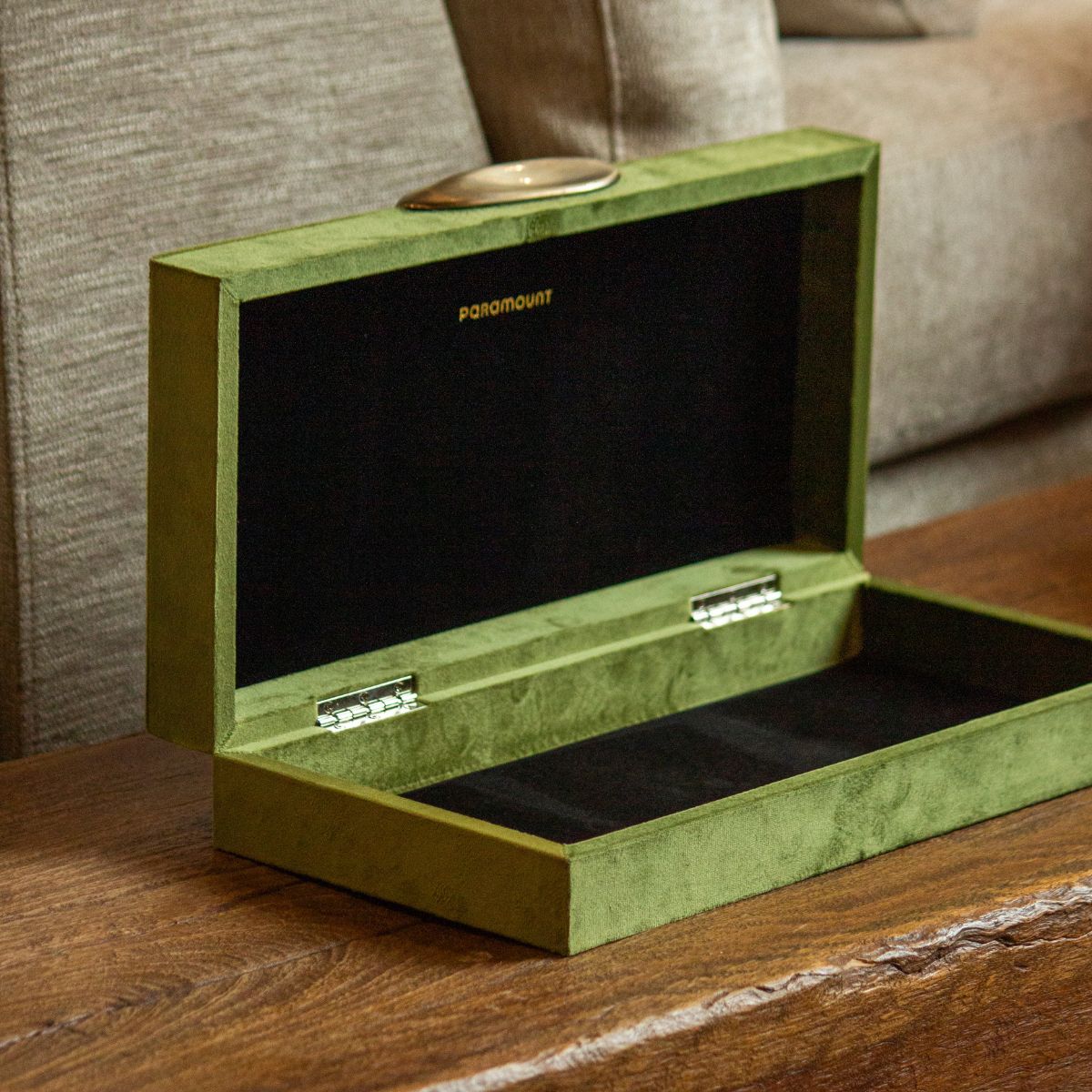 Produzida com materiais nobres, a caixa apresenta excelente durabilidade, acabamento impecável e estética premium. O veludo garante uma aparência luxuosa, enquanto a madeira assegura firmeza e longa vida útil.