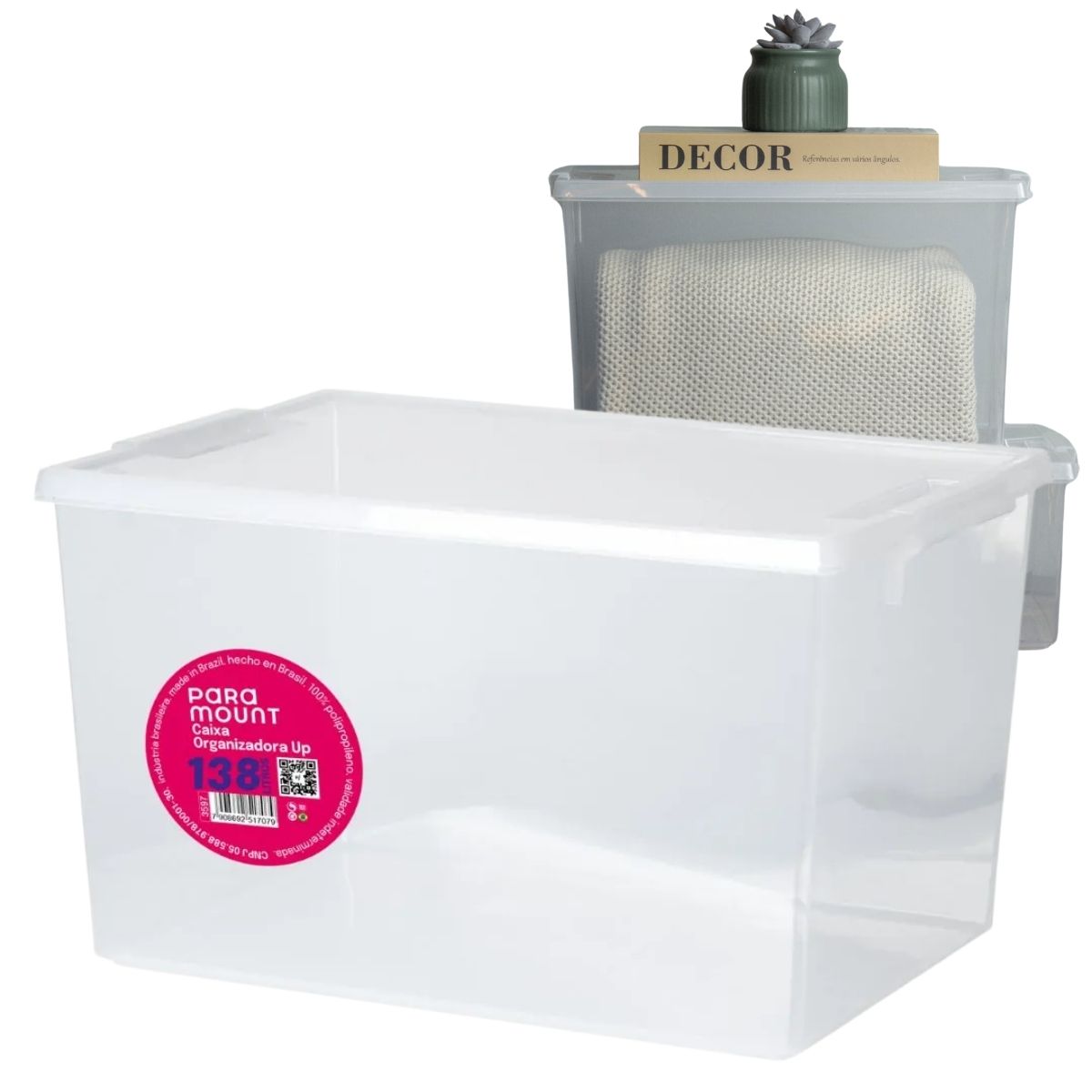 A Caixa Organizadora Paramount 138 Litros foi desenvolvida para oferecer praticidade e eficiência na organização de diversos ambientes da casa. Com design transparente, ela permite visualizar facilmente o conteúdo interno, facilitando o dia a dia ao guardar itens no guarda-roupa, despensa, cozinha, banheiro ou escritório.
