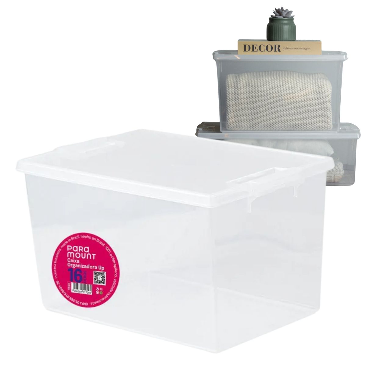A Caixa Organizadora Paramount 16 Litros foi desenvolvida para oferecer praticidade e eficiência na organização de diversos ambientes da casa. Com design transparente, ela permite visualizar facilmente o conteúdo interno, facilitando o dia a dia ao guardar itens no guarda-roupa, despensa, cozinha, banheiro ou escritório.