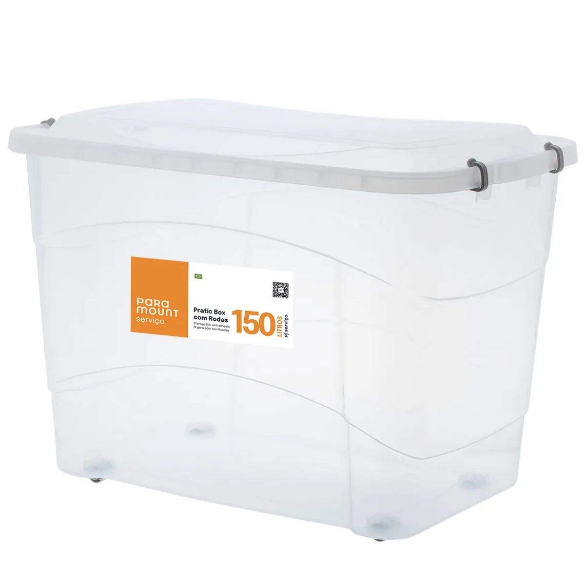 Caixa Organizadora Pratic Box 150L Com Rodinhas Paramount Com Tampa e Trava Para Organização Doméstica