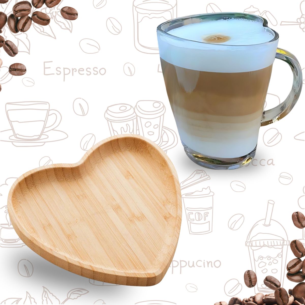Caneca de Vidro Coração 240ml + Pires de Bambu Coração 12,5cm Class Home