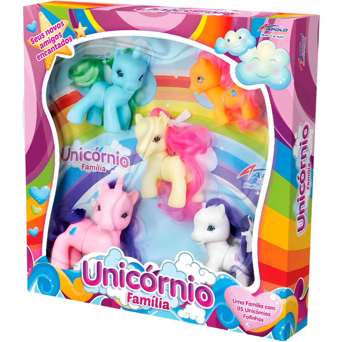 O Conjunto Família Unicórnio é composto por 5 pôneis coloridos e encantadores, feitos em vinil resistente e com detalhes que conquistam qualquer criança. Cada unicórnio tem sua própria combinação de cores vibrantes, trazendo alegria e fantasia para as brincadeiras.