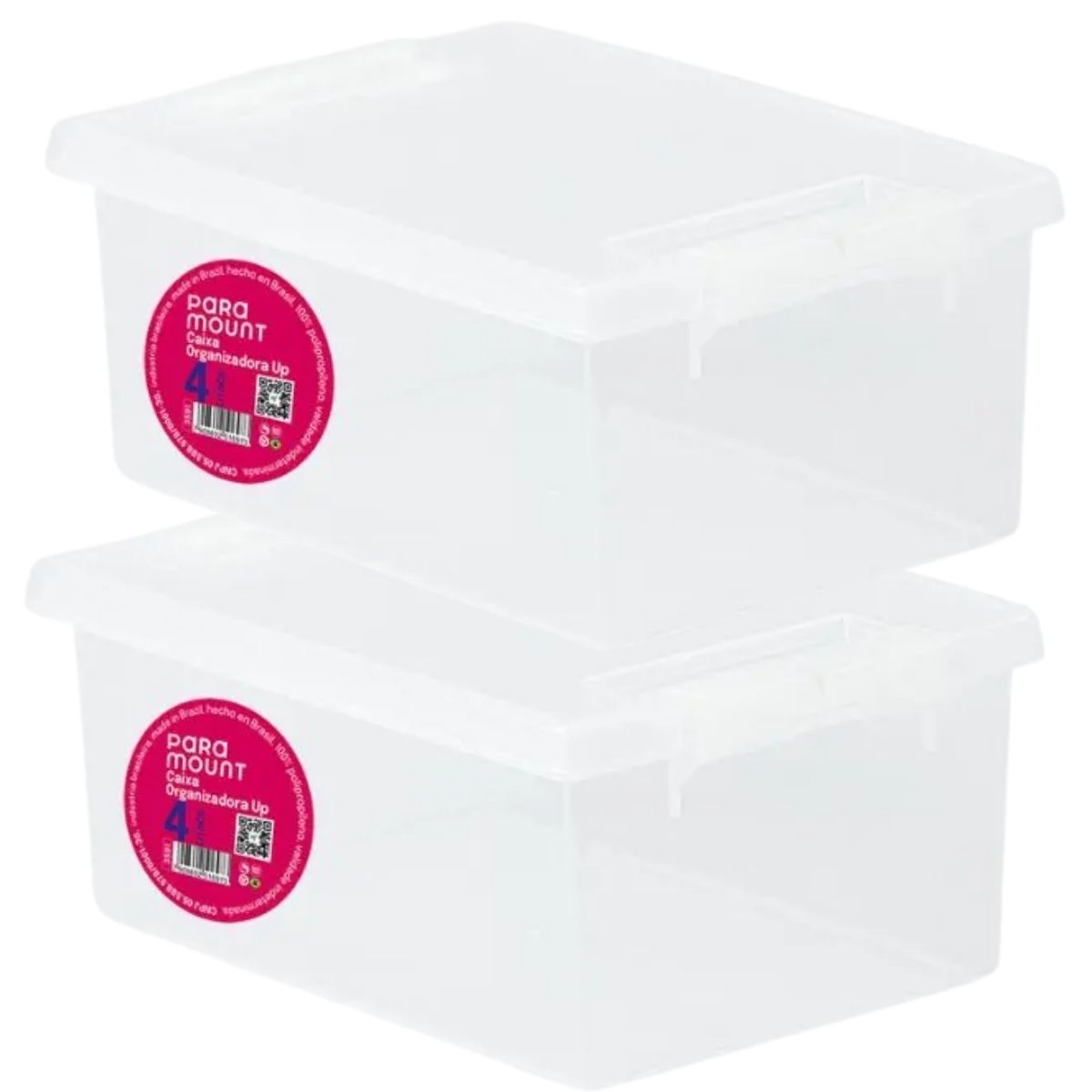 Caixa Organizadora 4 Litros Paramount Transparente Com Tampa e Travas Para Organização Doméstica