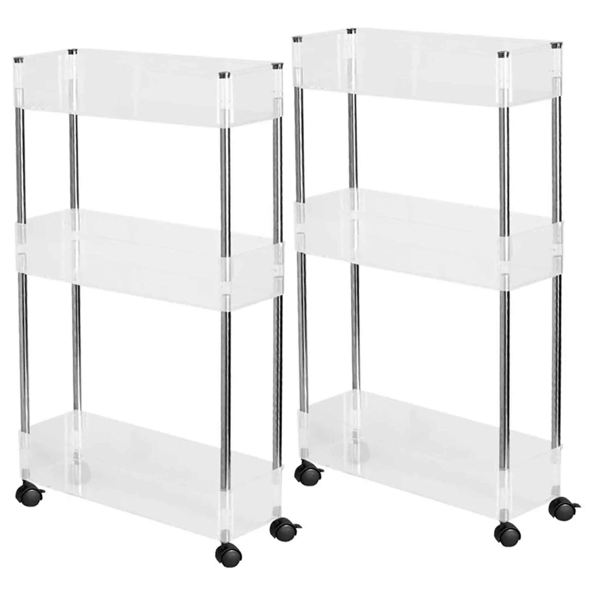 Kit 2 Carrinho Premium Triplo Em Acrílico 82x43x14 Cm Transparente