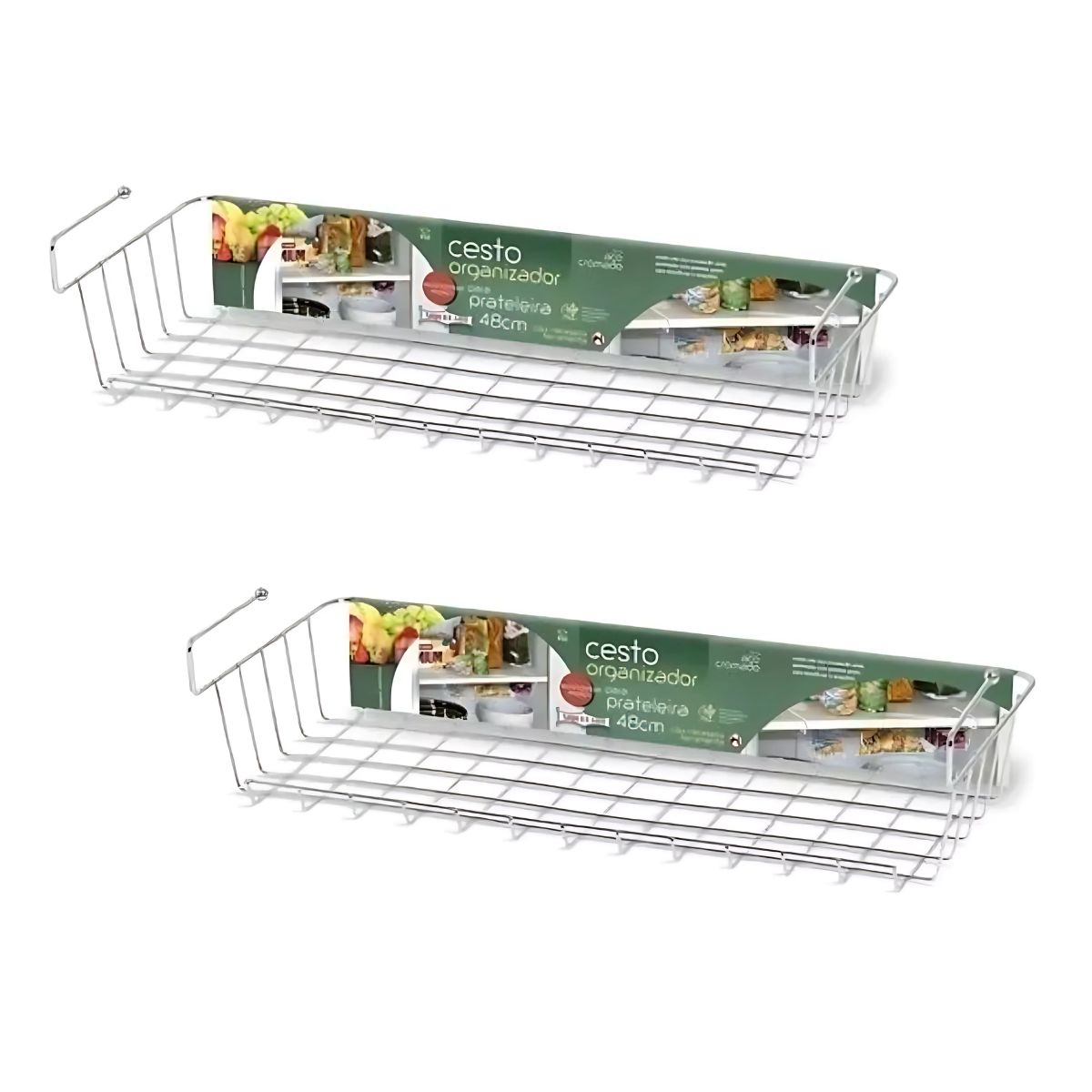 Kit 2 Cestos Gaveta Organizador 48cm Cromado - Arthi