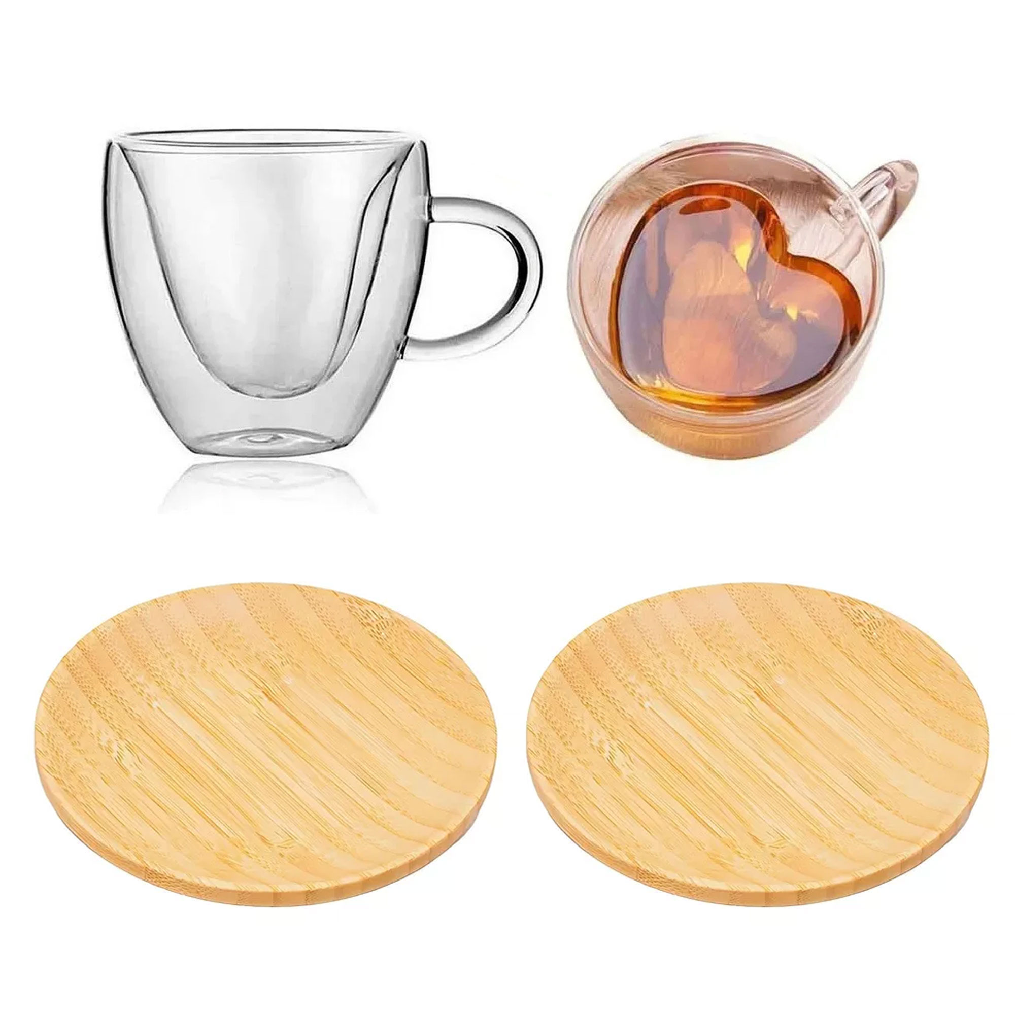 Kit 2 Copo Xícara Coração + 2 Pratos 11cm Bambu Ecológico