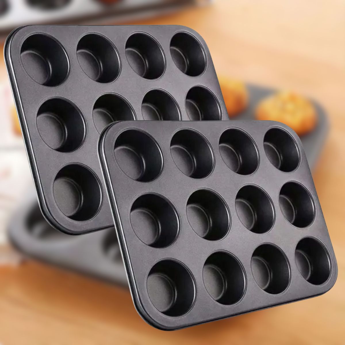 Cada cavidade é revestida com material antiaderente, garantindo que os cupcakes sejam facilmente removidos da forma sem grudar.