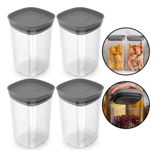 KIT 4 POTES HERMÉTICOS ORGANIZADOR BLOCK RETANGULAR 1L - OU