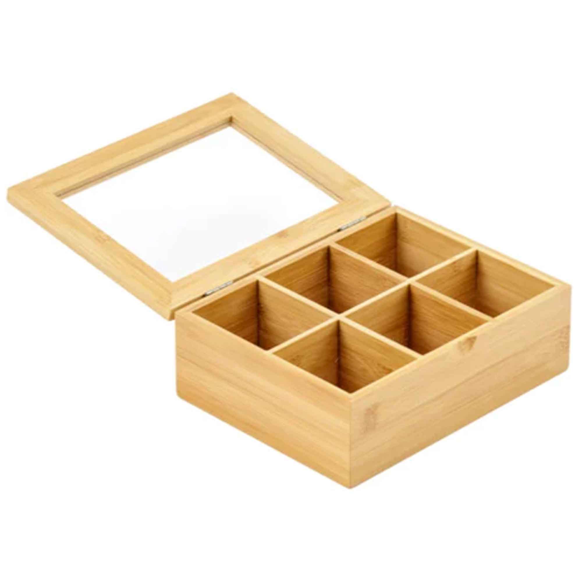 Organizador De Cha De Bambu C/ 6 Divisoes 21x16x7,5 Cm