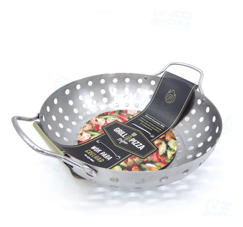 Panela Wok Aço Inox Para Grelha Churrasqueira Com Alça Prana