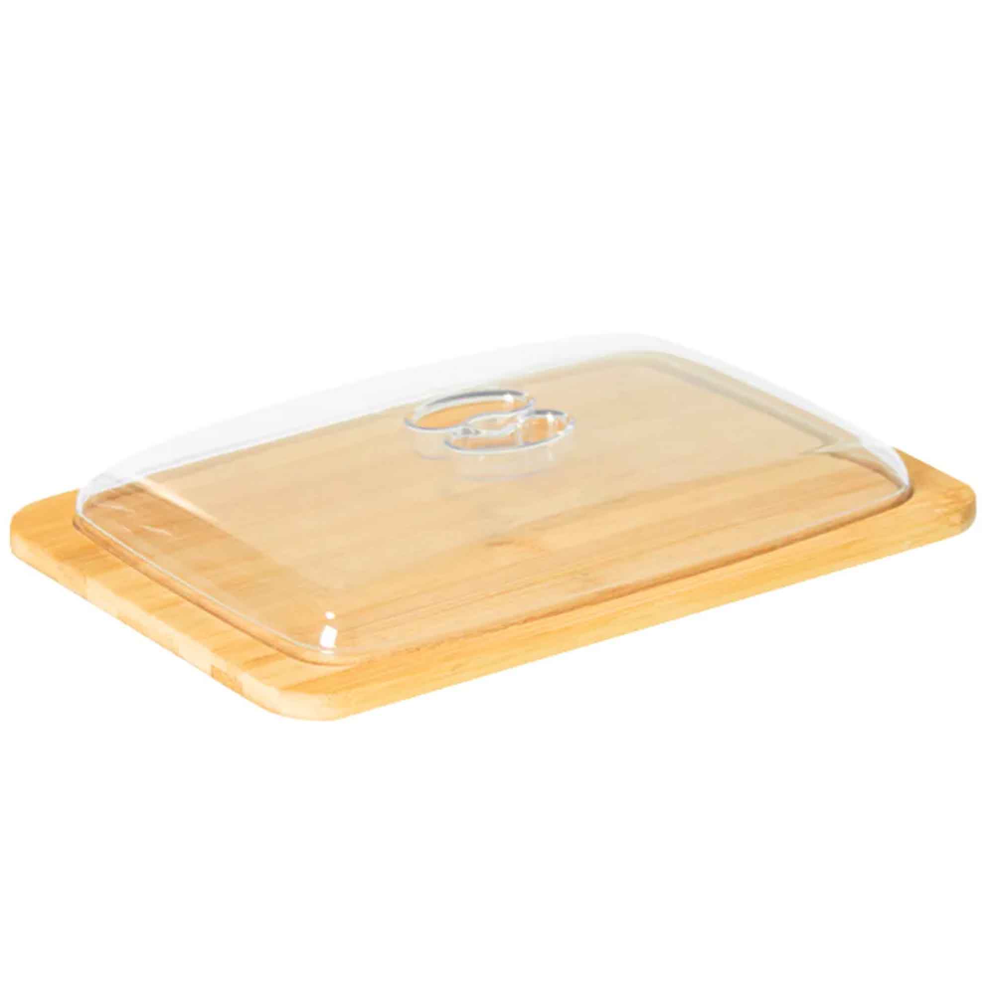 Porta Frios Duplo Retangular com Tampa Acrílica 28 x 21cm – Base em Bambu – Paramount