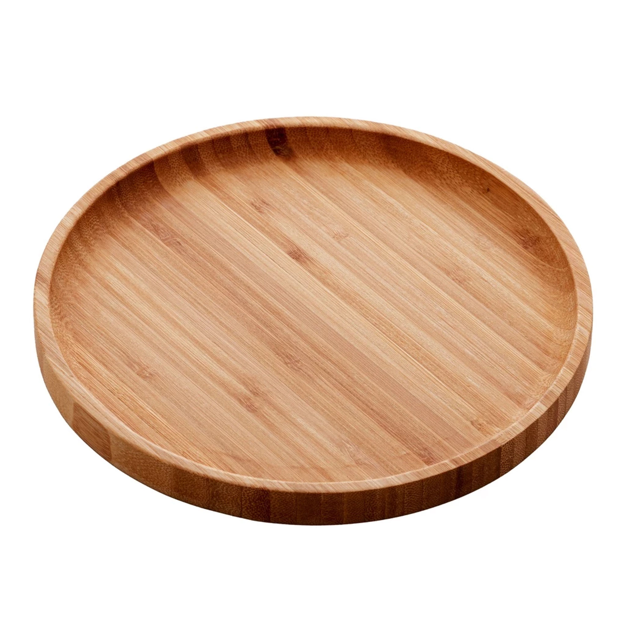 Prato De Bambu Madeira Redonda Cozinha Tábua Bandeja 20cm