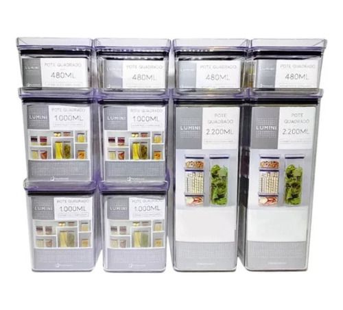 Apresentamos o Jogo de 10 Potes Herméticos Quadrados da Paramount, com capacidades de 480 ml, 1000 ml e 2200 ml. Este conjunto é perfeito para manter seus alimentos bem organizados na despensa ou na cozinha.