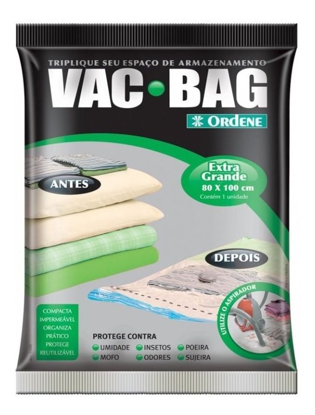 Vac Trip Bag é uma embalagem a vácuo que reduz até 3 x o tamanho da peça, para cama, mesa e banho. Protege contra mofo, insetos, traças, bolor e mau odor. Ideal para diminuir o volume de roupas em malas viagens ou na organização de armários. Fácil de utilizar, você pode retirar o ar com aspirador de pó ou com nossa Bomba Plástica para Vac Bag.É reutilizável.