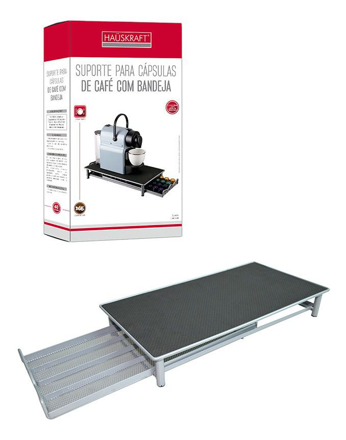 Bandeja suporte metálica com gaveta porta cápsula Nespresso.
